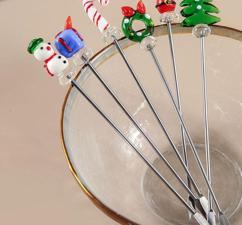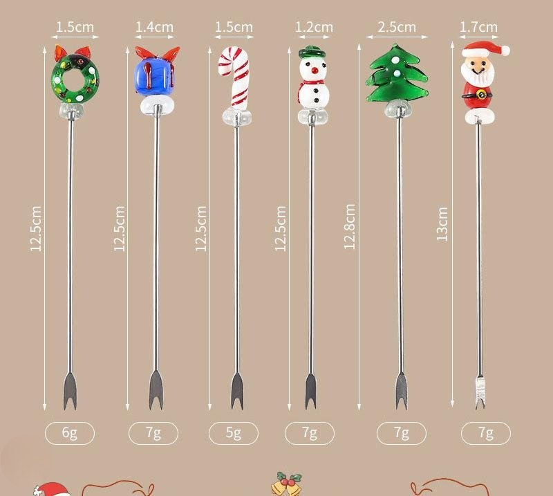 Christmas stainless steel handmade glazed cartoon 2-tooth fruit pick Santa Claus Christmas tree frui